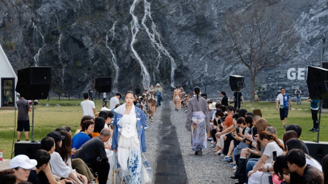2025年10月,莫干山植染大地艺术季如期举行。在格里恩矿坑的天然黑色背景和瀑布映衬下,模特身着植物染服装行走,跑山爱好者穿着草木染运动服穿梭在竹林间。15组大地艺术装置散落山野,部分作品作为常设景观保留。