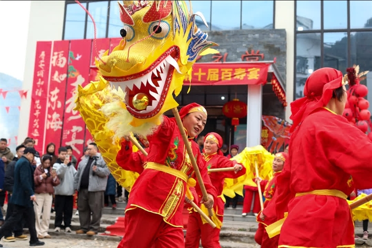 “小辈孝顺、村里关心,我们都很开心。”连续参加了十届百寿宴的村民沈文宝今年92岁,他笑容满面地说道,“百寿宴”已成为村里老人们每年共同的期盼,也见证了大家的日子越过越红火。