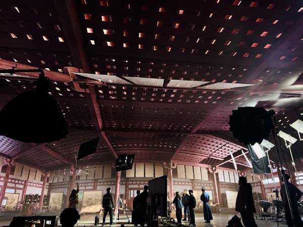 24米直径影棚则更多服务于室内戏、人物对话及文物细节的呈现。而顶屏的设计,则让天光的模拟成为可能。