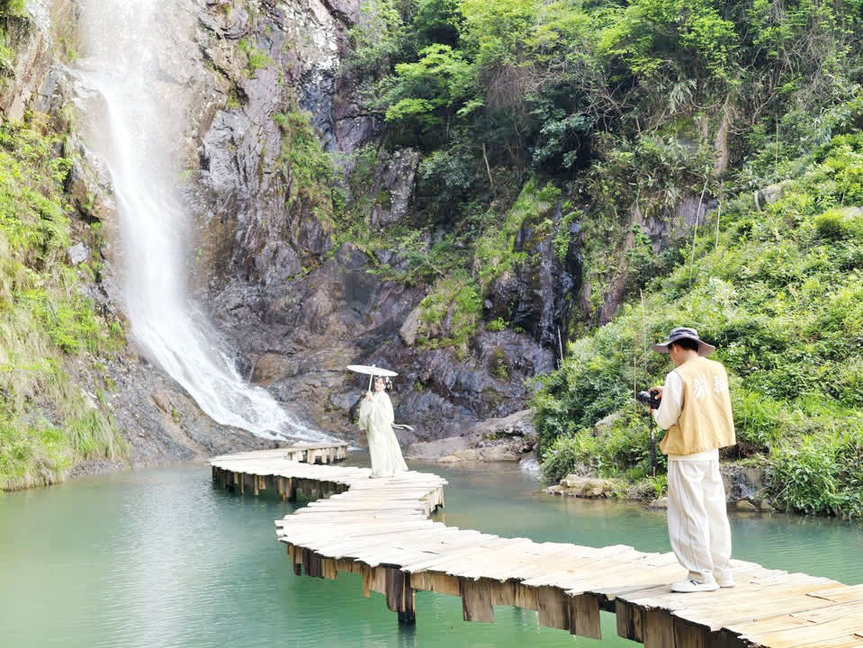近日,位于莫干山镇惊险潭瀑布景区的“杯莫亭茶驿”新业态正式对外营业。该项目融合古风旅拍、汉服体验等元素,成为游客沉浸式感受历史文化景区的新窗口。